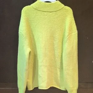 Soft ribbed knit sweater with a relaxed silhouette. Round neckline and textured stitch. Bright statement color for layering.