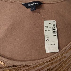 A flattering tank top that has a little something extra - sequins! It is the perfect top to wear to a summer patio. The tan colour is a neutral staple. Never worn - new with tags. Pit to pit measurement (approximate) - 19.5"