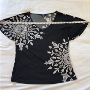 Reitmans Shirt Black and White Graphic Blouse Top Relaxed Fit Women's Size MP