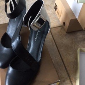 Reitman's shoes man made, size 7, two tone black and white with side buckle like new, worn twice