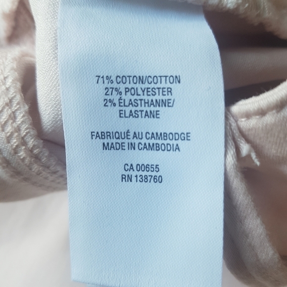 Fabric: 71% cotton, 27% polyester, 2% elastane.