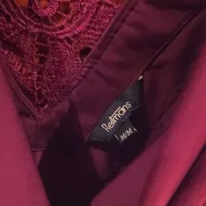 Sleeveless shell with intricate lace panel at the back. Smooth, lightweight fabric with a rich berry hue. Versatile, polished style for layering or wearing alone.