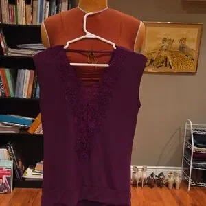 Reitmans Sleeveless Lace-Back Shell in Deep Berry