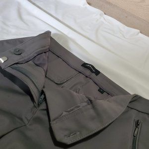 Sophisticated, slim fit slate gray (smoke pearl) ankle pants to wear to the office. 2 zippered front pockets and two fake (false) rear pockets. Ankle fit cut with ~25" inseam, see photos for details.