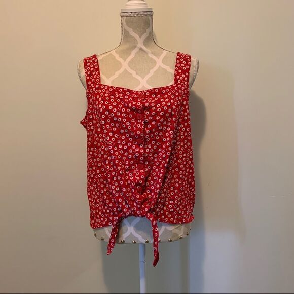 Perfect for summer! This button front tank with tie bottom is cute and breezy. In like new condition.