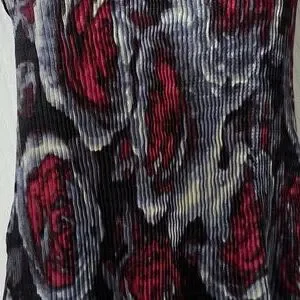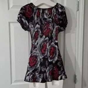 Body has neat pleated feature and stretches to fit. Elastic neckline.