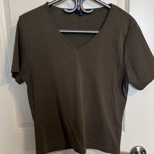 Chic V-neck ribbed tee by Reitmans. Soft fabric, short sleeves. Ideal for casual wear.