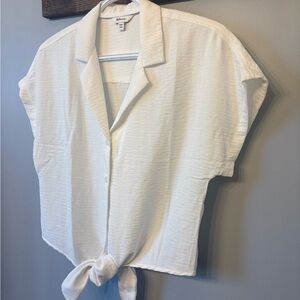 Reitmans White Cap Sleeve Tie Front Button Down Shirt XXS