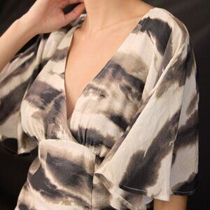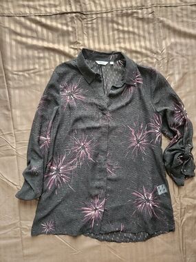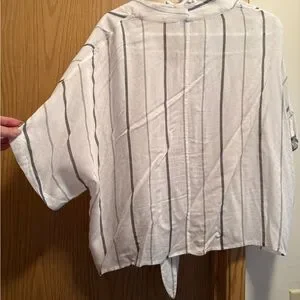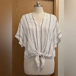 Stylish blouse with vertical stripes. Features a front tie detail. Perfect for casual outings.
