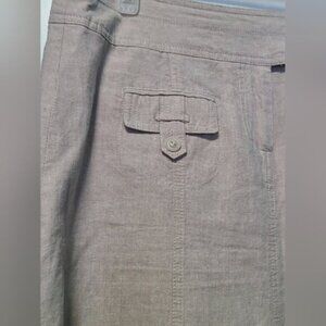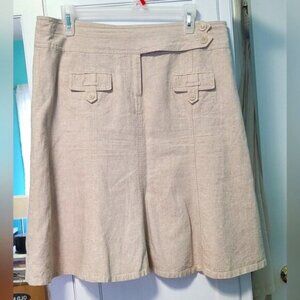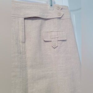 Reitmans Women Cute Linen Beige Cream Taupe Khaki Utility Skirt Midi A Line Summer Business Casual Skirt