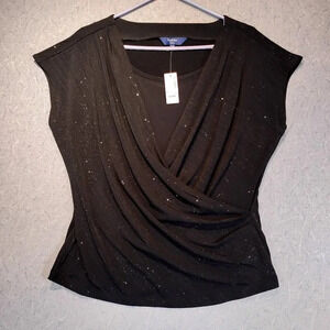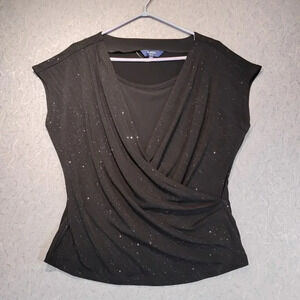 Reitman's Women's Black Sleeveless Stretch Deep V-Neck Sparkly Blouse Size Large