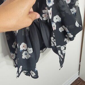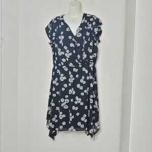 Reitmans Women's Black & White Floral Cap Sleeve V-Neck Wrap Midi Dress