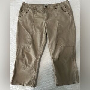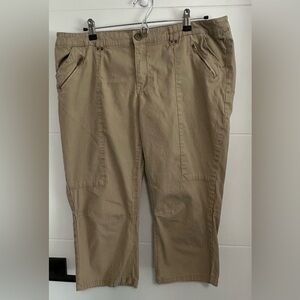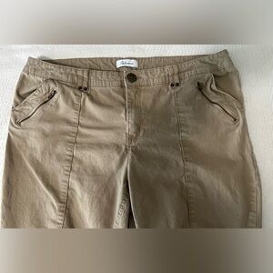 Women’s Size 15 from Reitmans. Elegant color. Perfect for casual wear. Worn a handful of times, some wear with pilling in areas, particularly on inner seam of upper legs as pictured in the photos. Comfortable and has a light feel. Good for those summer days at the office! 90% Cotton 2% Spandex