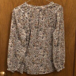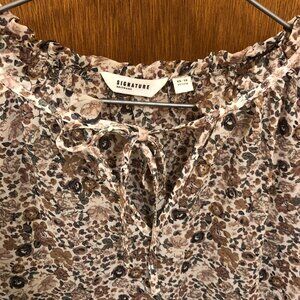 Reitmans - neck tie blouse - beige - floral - flowy - quarter sleeve - XS Petite