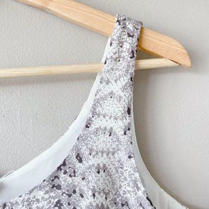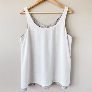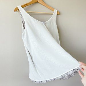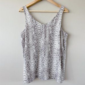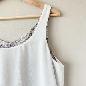 Reitmans reversible top means it can be worn with the snake pattern side or white side out. Lightweight material with thicker straps. Looks great worn on its own or paired with a cardigan. Can be studied business casual or everyday look. Flowy.