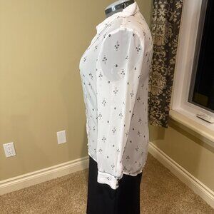Reitmans white and grey blouse feminine flowy embellishments long sleeve office