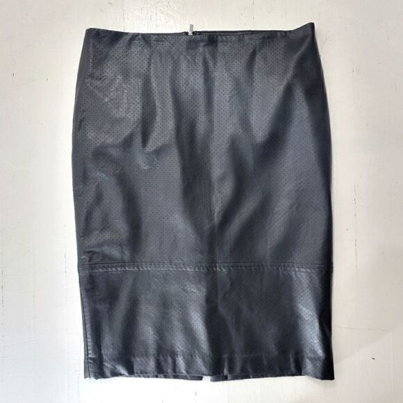 ReitmansāblackāperforatedāpleatherĀ pencilāskirt