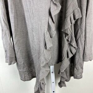 Relativity Cardigan Sweater Gray Open Front Ruffle Ramie Rayon Womens XL