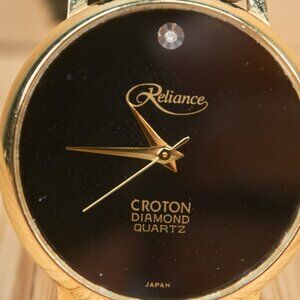 Reliance by Croton Diamond Quartz Ladies Black Watch, Gold Tone