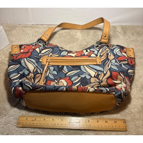 Relic Floral Canvas & Faux Leather Tote Shoulder Bag PursePolka Dot Lining