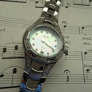 Elegant Relic watch in silver with sparkling crystal accents. Perfect for any occasion.