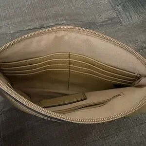 Elegant tan leather piece by Relic. Ideal for versatile use. Slightly worn on/around name plate as in picture.