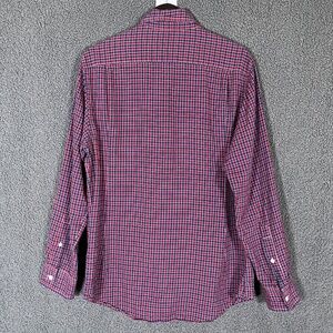 Relwen Seersucker Check Long Sleeve Button Down Shirt - Men's Size M - Red Blue