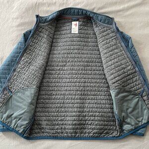 From Relwen website: Akin to wearing a skinny sleeping bag, this is quite possibly our most versatile jacket. Deploying a combination of quick closure snaps with a 2-way zipper, it’s like wearing a technical cardigan with just a few snaps in use. A super easy go-anywhere throw-on with a double-layer stand-up collar. Equally adept to layer under a larger parka or waterproof shell for superior warmth.