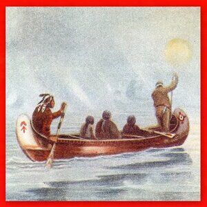 Reverse: A voyageur and an aboriginal travelling by canoe, carrying bundles of which one bears the initials "H.B." for Hudson's Bay Company, are surrounded with the face value and the inscription "CANADA"