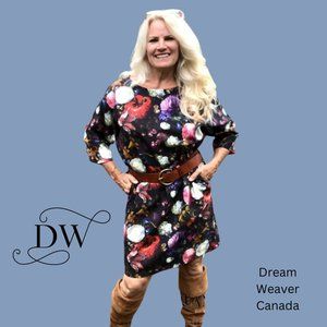 You can wear this gorgeous Rembrandt Print dress either belted or not.