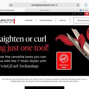 Sleek Remington hair straightener. Dual-tone design. Easy to use. Perfect for smooth styling.