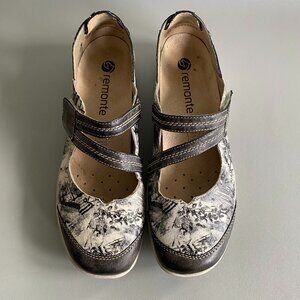 Remonte Casual Everyday Charcoal & off-white Shoes with Velcro closure. Fits Sz 8.5 perfectly, synthetic leather upper. Light wear on outsoles, insoles show light wear also, as pictured.