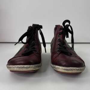 Remonte Chic Burgundy Leather Lace-Up Bootie High- Top Sneakers