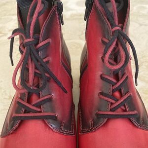 Double the laces and double the fun! You’ll love the details and color of these gorgeous and super comfortable Remonte leather ankle boots that are in excellent preowned condition.