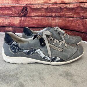 Remonte Jean Print Blue Lace Up Leather Sneakers