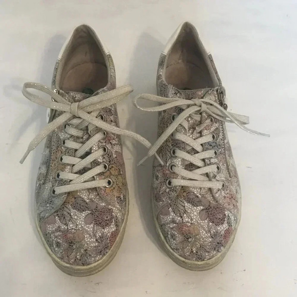 Remonte Soft Women's Leather Sneakers Shoes Size Eur 37 Floral Zipper Lace Ups