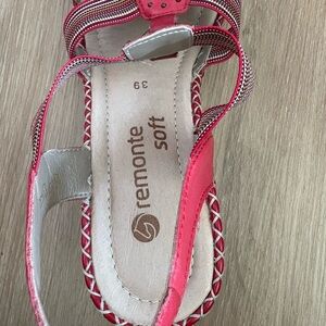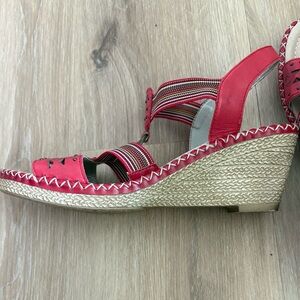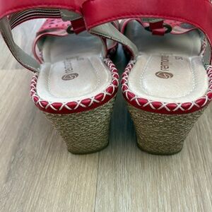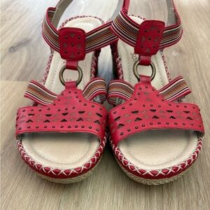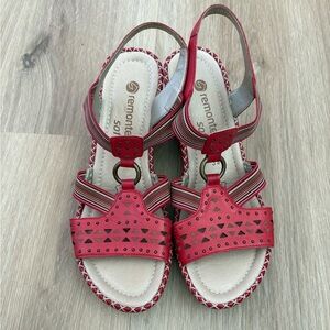 Remonte Soft Women's sz 9 Red Leather Sandals Slingback Wedge Slip on