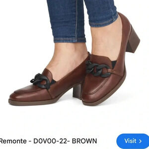 Remonte shoes, women leather NEW! Chunky heel Dovoo-22, solid,embellished,tan