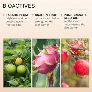 Proven to visibly reduce the signs of photoaging, such as fine lines and wrinkles, dullness and pigmentation, whilst still being formulated to limit irritation, the energizing formula combines three types of Vitamin C with moisture-boosting Glycogen and Hyaluronic Acid, for the ultimate radiant glow. Enriched with a bioactive blend of nature’s most powerful ingredients; Kakadu Plum, with 100x more Vitamin C than oranges, helps brighten and even skin tone, Dragon Fruit, packed with prebiotics and essential minerals, helps protect and strengthen the skin’s moisture barrier, Pomegranate, rich in Omega 5, helps soothe, and Polyphenols and Vitamin E’s antioxidant action helps protect skin from damaged caused by environmental aggressors.