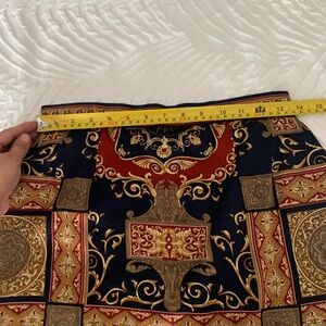 Tags : Versace inspired, bold elegant, navy and gold, luxury silk skirt, Italian fashion, statement piece, office to evening, timeless chic, structured fit, classic pencil skirt, soft silk, designer vibes, holiday ready, small size, vintage glam, elegant silhouette, power dressing, fully lined, minimalist luxury, high-end style.