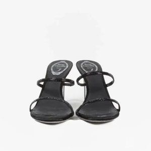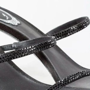 Rene Caovilla Bessie Black Satin Strass Sandals