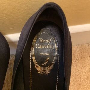 Rene Caovilla YASMINE CRYSTAL BLACK PUMP satin with jewelled trimmed sole/heel