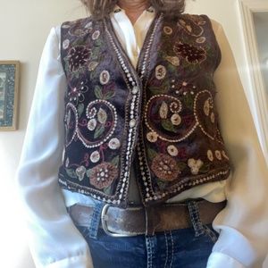 Rene Derhy 90’s Vintage Bolero Vest (Women M) embroidered flowers Brown/Green