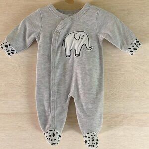 Rene Rofe size newborn to 3 months elephant snap-up footie sleeper.
