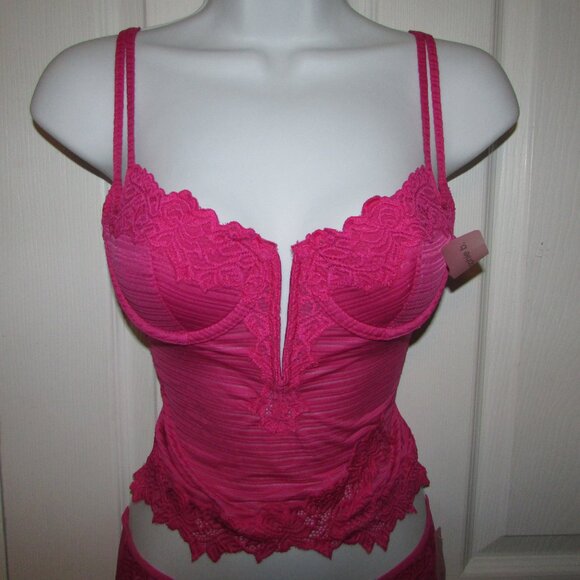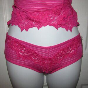 Beautiful hot pink lace 2 piece set - corset bustier with low v-front and booty shorts cheeky panties