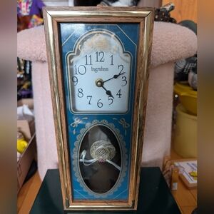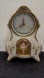 A beautiful eye-catching clock with a unique design like a miniature grandfather mantle clock, The clock keeps time, It plays Tales of the Vienna Woods and the ballerina dances and spins around on the hour, it must be wound regularly to keep time accurately, and the ballerina is wound separately. Made between the 1940s to 1950s in Germany, it features illuminated dials, domed glass on the face of the clock and the shield around the ballerina, it does show some signs of age some paint is worn off the flowers and around the trimming, I'm also unable to get the alarm to function. Soon to be an antique clock.