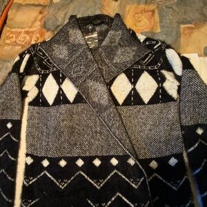 Renuar Black & White Diamond & Zig-Zag Pattern Cardigan (Small) NWT