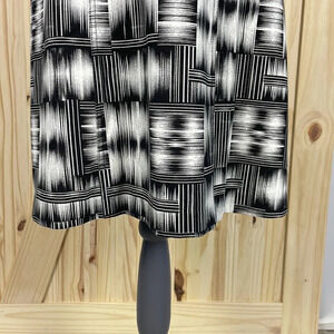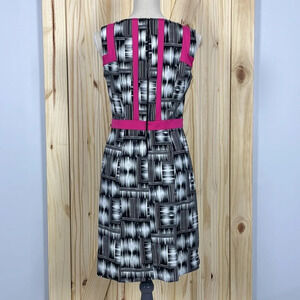 Renuar Sleeveless Midi Sheath Dress Size 6 Black Geometric Print Hot Pink Trim