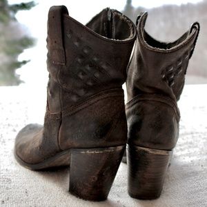 These boots are holding up quite well considering that they have a distressed leather look, they are vintage, and were worn with love for a while! Still got some life in them for someone to love them even longer!