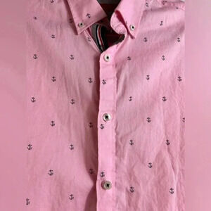 100% crisp cotton short-sleeve shirt, Large, relaxed fit, pink with small boat anchor print. Excellent preowned condition